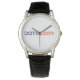男性用クラウンプロテクター黒革ストラップ時計 腕時計