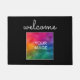画像カスタムの写真の写真または会社のロゴをアップロードするモダンようこそ文字エレガントプロフェッショナルデザイン黒い四角形のフォーマット/ドアマット。