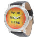 このカスタマイズ製品には、上に示すように独自の背景画像または写真をアップロードする。このカスタム時計テンプレートはシンプル時間を示す細いエレガント輪郭の黒い数字を持つ時計デザインおよび時計である。(2素晴らしpx)の明るい黄色のエッジは、さまざまな色に対してきれいに数字を目立たせる。