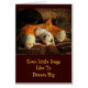 カウボーイ・ブーツおよび帽子によって囲まれる鞍敷で眠ったグレート・ピレニーズの3匹の子犬のすばらしいイメージ。 このイメージは賞獲得のカメラマンによってC. Everitt行います。