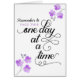 メッセージを特色にするこの書道のタイポグラフィのデザインのこの困難なプロセス中の時にとどまるために思い出させて下さい誰かに戦い癌直面することを"これに覚えています1日時間"。 デザインはカードの上部の右およびより低い左のコーナーの美しいラベンダーの花によってアクセントを置かれます。