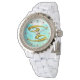 癌〔占星術の〕十二宮図誕生日ジュエルアクアブルーオパールティール(緑がかった色) 腕時計