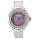 登録ナースRNシルバーカドゥセウス明るい赤紫色迷彩柄 腕時計