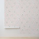 ピンク色の背景に白いさくらんぼの花が浮いているインクスタイルの模様を特徴淡い色のとする。