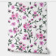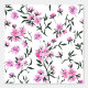 白いさくらんぼの花の枝絵を描で、ピンク色の背景に水色とインク