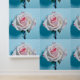 白いウェットバラのターコイズの青い背景 壁紙