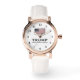白い革のストラップと美しいトランプの女性の時計。保ア素晴らしメ。上品スタイリッシュな女性のためのタイムピース。クールユニークデザインとヴィンテージフラグ。共和党のパーティー運動を支持する。アメリカ国旗を持つ愛国的デザイン。保ア素晴らしメ。アメリカを作素晴らしり直せ。ローズゴールド.