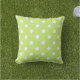 白い水玉模様パターンのライムグリーン アウトドアクッション