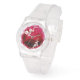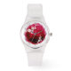 白モダンい背景に白い花が咲く水彩画(ピクセル化された画像)のデザイン。ローマ数字を使用したウォッチのデザイン(半透明+ドロップシャドウ)。