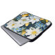 このデザインは花柄が好きな人に最適だ。白い花には淡い青の花が付いている。
