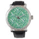 白いbに緑の葉モンテラ熱帯性の模様 腕時計