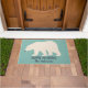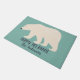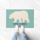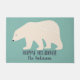休日のゲストのためのドアマットを、文字通り着手して下さい。 この玄関マットはおもしろいの暗い濃紺のレタリングの挨拶のメッセージそして名前の軽いティール(緑がかった色)の背景そしてあなた自身の選択に対してクリームの白くまのイラストレーションを特色にします