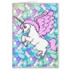 ピンクの髪と翼を持つ可愛い白いユニコーンの背景のグラデーション青のパターン。完全にカスタマイズ可能大きなユニコーンは移動してリサイのまわりにズすることができる。