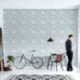 白と青のグレーのフローラタイルの壁紙 壁紙