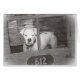 私は、この美しい白いボクサーを撮影したビジネスの赤いドアの背後にあるカンザスシティーのカントリークラブプラザで、モーメント。白黒のヴィンテージ効果を作成。カー空白のド独自の文字を追加