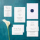 新郎新婦の名モダン前と披露宴情報の書文字を持つミニマルデザインをフィーチャーした結婚式招待状。
