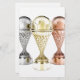 金ゴールド、シルバー、ブロンズのサッカーのトロフィーが輝く白い背景に輝く