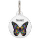 メタリックスパークルバタフライオンホワイトペット用名札ブラックフォント