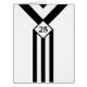 3つの交互になる白黒シェブロンはダイヤモンドで幾何学的なパターンおよび端の上から降ります。 それはリボンからつるす様式化されたメダルのように見えます。 ダイヤモンドは記念日年の間カスタマイズ可能な25を含んでいます。 3つの黒のストライブ柄はダイヤモンドの底から縦のデザインの基盤に伸びます。