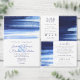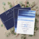 白エレガント色と海軍の水の色絵を描ウォッシュウェディングRSVPカード。
