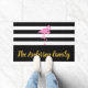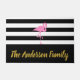 お客様が正しい家に着いたことをお知らせください。下部の黒の太い金ゴールドに、ファミリ名をフェイクスクリプトに追ストライプ加できます。背景は白黒のストライプ。ピンクのフラミンゴが文字の上。