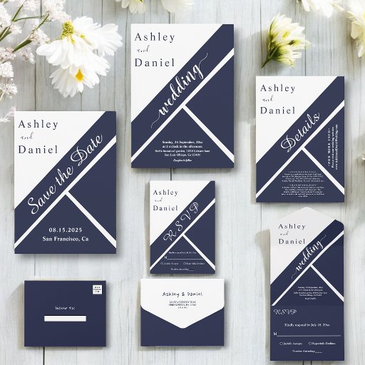 青エレガント色の結婚式招待状にピッタリモダンング結婚の青い背景に白い書エレガント跡を施したデザイン。
