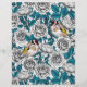 バラの花と金魚の鳥の手描きベクトルパターン。パターンのすべての要素描は、まず紙にインクを付け、次に再描画し、Illustratorで色を付ける。