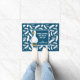 白パーソナライズされた鴨と羽毛ネイビーブルー ドアマット