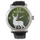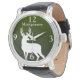 白パーソナライズされた鹿バックグリーンメンズウォッチ 腕時計