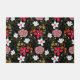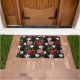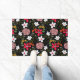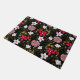 白ピンクかわいらしフローラ黒ブラシストローク ドアマット