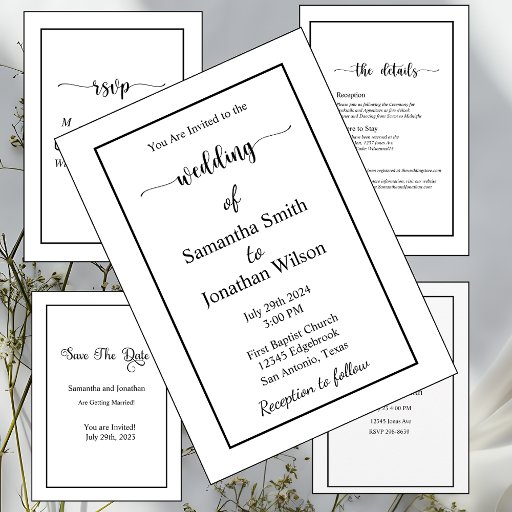 白モダンミニマル色オン黒ブライダルシャワー 招待状