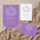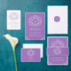 白手描き葉モノグラム紫RSVP結婚's 出欠カード