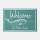 海航海のグリーンの上に白いナルワルイラストレーションと家族の名前を特徴とする可愛いテーマのパーソナライズされたドーマ。