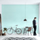 白色光ストライプのティール(緑がかった色)カラータイルスタイルデザイン 壁紙