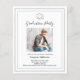 白い背景と飾グレーの枠と銀フェイクの卒業キャップ。写真の名前と詳細をカスタマイズして追加する。黒い文字。1枚= 1枚の招待状が印刷されたエッジ