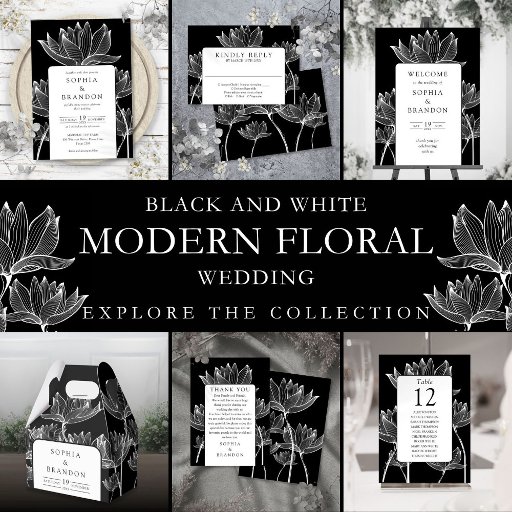 Black And White Modern Floral Wedding Suiteデザイン: Pure Piglet Designs