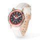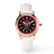 白黒エレガント顔、赤フローラハートモチーフ 腕時計
