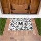 白黒クリスマスツリーパターンモノグラム ドアマット