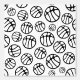 白黒バスケットボールパターンの子供の壁紙。白い背景に黒い抽象芸術ボールを描いた手描き。子供の素晴らし部屋や子供部屋の部屋やバスケのファンのために。