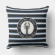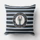 黒モダン青と白のボート名ストライプの青の航海のロブスター歓迎装飾用クッションネイビーブルー