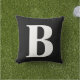 枕の両はっきりした側に黒い背景をカスタマイズ可能。 白い大文字のモノグラム文字が表側を中心に表示されます。