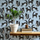 青い背景に白黒のタキシード猫。動物愛好家に最適オリジナルアートby Nic Squirrell.