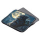 ビグフット錠ケース。黄金の目白熱[赤熱]光を放つを持つサスカッチで、フクロウを肩に付け、青い色合いの満月の森の背景。