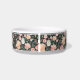 桃の牡丹の水色の花の模様パーソナライズされた、赤面のピンクのバラとシックなオフブラックの背景に緑豊かなアクセントとクリーミーな白いアジサイを特徴とする私たちの犬のボウルであなたのポウチを満喫。犬の名前を前面に表示してパーソナライズ。