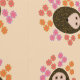 この壁パターン(の模様が)ある紙は素晴らし、眠そうにボールの中でカールした小さな茶色のスパイシーなハリネズミの可愛い漫画を特徴とする。ハリネズミは花に囲まかわいらしれている。ハリネズミはクリーム顔で茶色で、花は赤、オレンジ、ピンク。