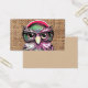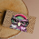 ピンククールの紫のカラフルのおもしろい入れ墨。茶色のユニークジュートのテクスチャ背景のデザイン。どんな大事な行事でも誰でも完璧なユーモアの贈り物アイディア。