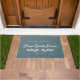 ホーム甘いホームドアマットあなたの姓とパーソナライズされたあなたの家族や家が設立された年と石板ブルーで。石板ブルーのドアマットとホーム甘いホーム白い書道と白の緑の上エレガントの文字であなたの名前。