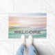 砂のビーチ海波サンセット抽象芸術水色 ドアマット