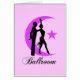 ピンクの月および星の背景に対して遠くにな夜を踊っている社交ダンスのダンサー。 ダンス学生のためのかわいく、クールな情報通の社交ダンスの服装、ダンスの先生、ダンスの一団およびダンスの恋人。
