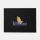 プラシ天のドア・マットに黒で示され、歓迎の手そして文字を祈ることがあります。